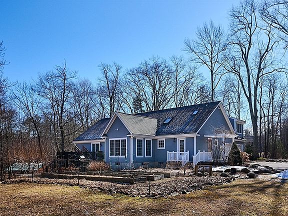 Unique, timeless, & well-built home, nestled in an idyllic woodsy setting on 3.78 acres. Thoughtful layout that offers myriad options, the first floor includes a gorgeous kitchen with custom cabinetry & ample granite counters, opens to a light-filled sitting/dining room, fireplaced living room, & more formal living/dining room with pocket doors. Also on the first floor are three bedrooms, each with unique features, a huge full bathroom with curbless shower, half bath, & laundry room - all allowing for comfortable single-level living. Upstairs is an additional full bathroom and a 26'x17' bonus room - home office, guest suite, craft or media room - you name it! The huge basement includes a storage room, main room, and workshop with walk out access & a garage door. The grounds include a wraparound deck with hot tub, perennial beds, gardens, stone patio, and path to the 30'x20' pole barn. Convenience & peace of mind with efficient 5 zone heat, A/C, and a whole house automatic generator.
