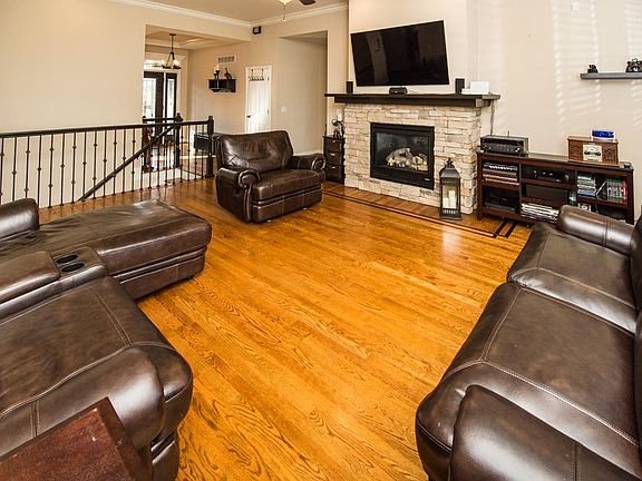 One story ranch with mostly finished, walkout basement features upgraded finishes like crown mounting and 11' ceilings in most areas, hardwood floors, ceramic tile, whole-home water filtration and softening system, whole-home humidifier and UV sterilizer on furnace, 8.5' ceilings in the basement with quality laminate and ceramic tile flooring, security system, central vac on both floors, and a new roof with upgrades like snow-ice barrier and the best ridge ventilation system available. Also features jetted tub, antique bronze Men fixtures, very large walk-in tile shower, very large master closet, Wi-Fi enabled thermostat, surround sound wired in both the living room and the home theater in the basement, and a vented gas fireplace with 100 gallon LP gas tank.