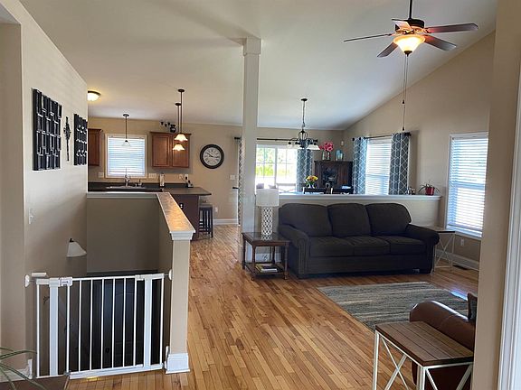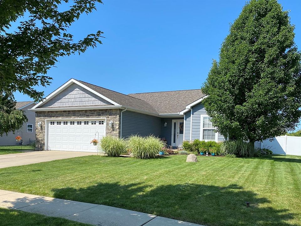 Take notice of this impeccable 5/3 ranch home on a culdesac, in beautiful Tower Meadows! The main level promises comfort and cleanliness with entry into the vaulted ceiling living room - equipped with a media closet and surround sound, all wide open to the dining room and lovely kitchen showing off its newer appliances/sink/disposal (2018). The basement adds in another 1300 fin sq ft (2019), which includes a large recreation area, two more bedrooms, a third full bathroom, and plenty of storage areas. Also newer are the HWH (2018) and A/C (2015). Garage is dry-walled with storage above, and has a gas line for heat if needed. Dual sliders from the dining room and master bedroom invite you to the backyard patio, which is a spacious and private, fenced-in space, with no residents behind you. New paint throughout, birch hardwood in main living area and ceramic in bathrooms. Subdivision has a small picnic area and pond for fishing. Wonderful location, Valpo Schools.