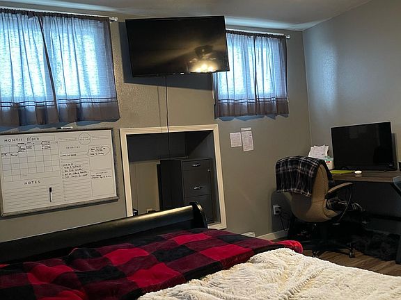 -The side of the duplex pictured is freshly painted and has brand new flooring -The downstairs side of the house (not pictured) is under partial REMODEL with new paint and carpet. -There are 2 full size kitchens both with fully functioning appliances and even comes with pots and pans as well -All of the furniture pictured will be staying for renters use, also 2 bed frames available to be left with a box spring and a mattress -The mounted TV and desk in bedroom will also be left for renters use -Fenced in backyard with a fire pit -There is a full 2 car garage -There will be a washer and a dryer provided on both sides of the house -There are many options for parking in the driveways and unlimited parking across the street Price: 425 PER ROOM per month + 425 security deposit to be paid with first months rent (utilities will also be tenants responsibility) FURNISHED