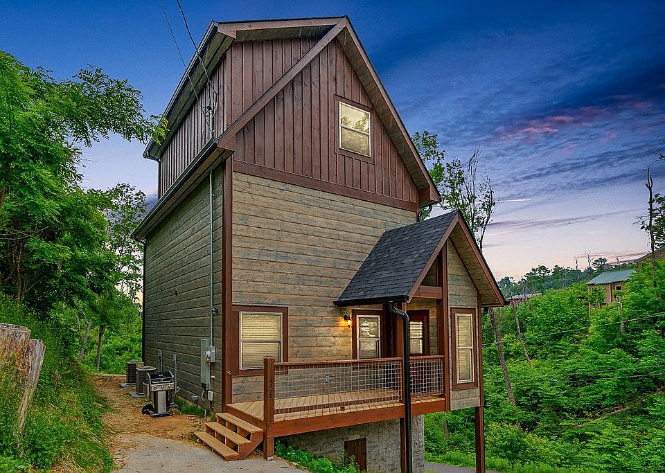 This newly built, two-bedroom cabin sleeps up to eight guests and boasts floor after floor of space, great sleeping areas, and plenty of convenient touches (like three half baths) so there’s room for both quiet privacy and delightful gatherings!