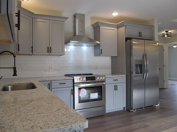 You will love the look and feel of this new construction. This home features an open floor plan with large great room and modern kitchen with beautiful cabinetry, granite counters, tile back splash, sleek range hood and more. Easy care vinyl plank flooring through out, modern lighting, tray ceilings in the main living area and master bedroom. The master bedroom also has a walk-in closet and master bath. Nice covered front porch and rear deck. Off-street parking with a concrete drive with additional parking in the back from alley access. This is a must see, close to schools, shopping, and easy to commute with Rt 262 loop nearby.