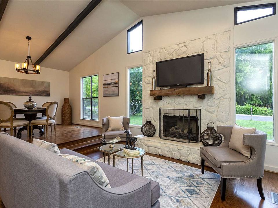 Updates from top to bottom on this one! This true 3 bedroom 2 bath home located in Edgewood has what you are looking for.....new kitchen...new bathrooms, true master, new paint.....As you enter the home you will see the vaulted ceilings with exposed beam and stone fireplace. The dining room is spacious with tons of natural light, hardwoods and opens to kitchen. The kitchen has new counters, new stainless appliances and new cabinets. The master bedroom has hardwoods and the master bath has new tile shower, new vanity and new fixtures. The two additional bedrooms have great closets, hardwoods and new paint. The 2nd full bath has new vanity, tile and fixtures. The back deck is newly stained and looks over the large, flat, fenced back yard. Off the deck is a stone patio with fire pit. New roof, new exterior paint, and new landscaping. Conveniently located to downtown this is a must see!