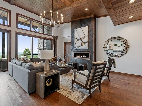 COMPLETED & FULLY FURNISHED!Mountain modern meets contemporary luxury in this chalet above the clouds. A unique custom design by architect Tony Boyatt is sure to impress . Find yourself in ultimate privacy, perched on top of the highest point of the mountain, surrounded by lush hardwoods and endless multilayered views. Floor to ceiling glass windows and doors bring the beauty of the outside in to this spacious, open layout. Upon completion you will find upgraded appliances, granite counter tops and a custom interior design by 2GD, leaving no detail out.