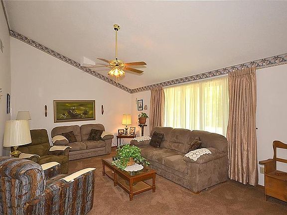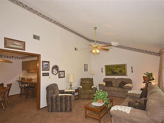 Well maintained earth contact home on an extra large lot. This home is located at the end of the street in a private treed setting with two storage sheds, an R.V. carport and a large deck off the front of the house that is perfect for relaxing. From the first step inside, you will notice the large living room with a vaulted ceiling and tons of natural lighting from the front-facing windows. The eat-in kitchen has custom cabinets, skylight, pantry, dining area with built-ins and the option to keep all appliances!