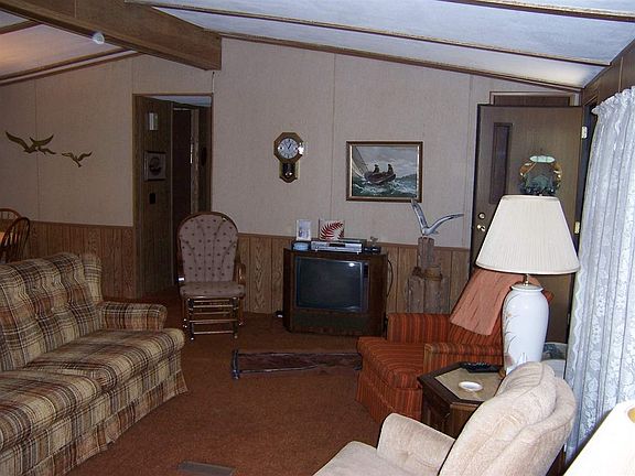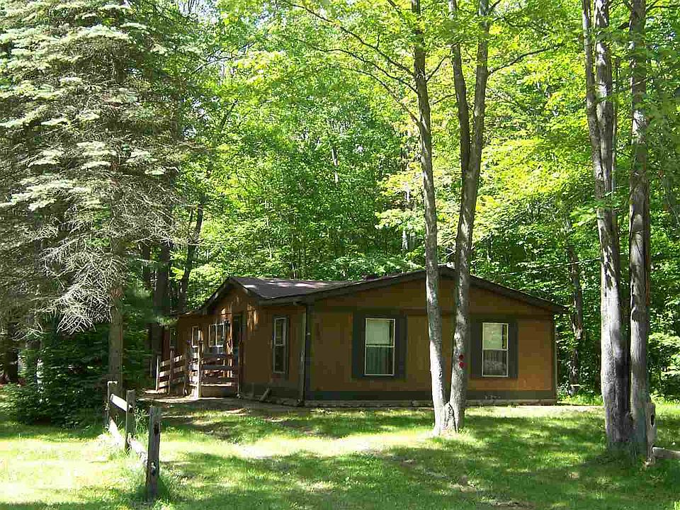 This 1984 Foxwood home offers 3 bedrooms, 2 baths, forced air heat and central air, 2' X 6' construction, and includes two beautiful lots that back up to state land for privacy and enjoyment. The home has been lightly used as a seasonal residence and is in like new condition. New septic system installed in 2014. Furnace and roof shingles new in 2000. The master suite is separated from the guest bedrooms. Included in the sale is the adjoining vacant lot which has an old well and electric service pole, a steel garage, along with a concrete slab for camper or boat storage. This is a very private setting with fantastic woodland views.