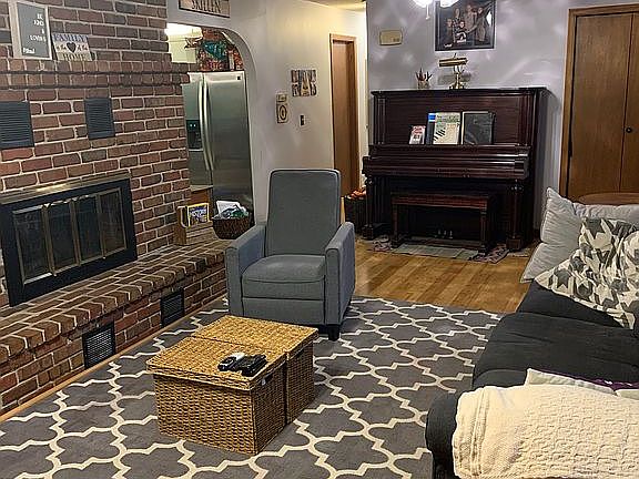 Features of this home include a wood-burning double-sided fireplace, built in bookcases/cabinets, open floor plan, 3 closets in the master bedroom, main-floor laundry, 2-car attached garage with a work bench, and a basketball court in the back yard. The en suite master bathroom was remodeled in 2012, and the fourth bedroom with an egress window and en suite full bath was added to the basement in 2016. The basement includes an office and a craft bench.