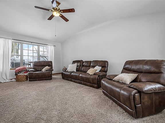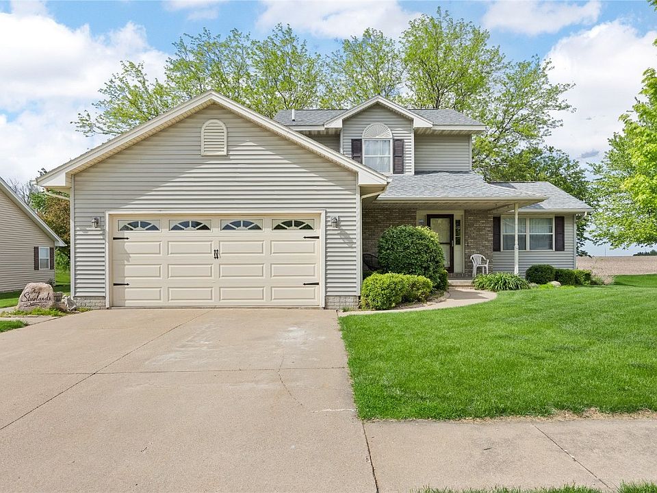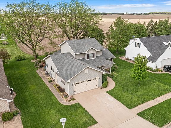 Nestled in a sought-after neighborhood boasting scenic views of the Iowa countryside and no rear neighbors, this home offers serene living at its finest. The main floor presents a luxurious primary suite, complete with a full bathroom and expansive walk-in closet. A seamless flow guides you from the grand entrance, adorned with lofty ceilings to the spacious family room, dining area, and kitchen. Recently updated, the kitchen showcases brand-new countertops, sink, hardware, and appliances included. Step outside to relish the tranquility of the backyard oasis, featuring a sizable deck and covered porch, accessible from both the primary bedroom and dining area. Upstairs, two additional bedrooms and a generously-sized full bath await. Downstairs, the finished lower level boasts a sprawling open rec room, ideal for an office or potential non-conforming bedroom, along with a convenient half bath and ample storage space.