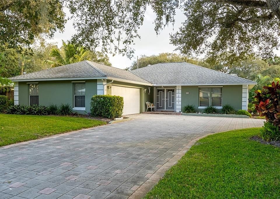 This nicely updated 3 BD/2.5 BA pool home offers easy in/outdoor living & proximity to Vero's best island amenities. It is contemporary w/ open access between the large kitchen (Quartz counters, SS appliances, white cabinets) & spacious great room w/ vaulted ceilings. These areas have light & beachy wood plank tile. A circular driveway & high property elevation give great curb appeal.
