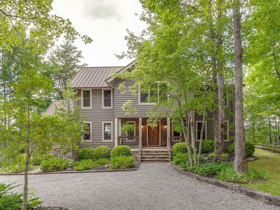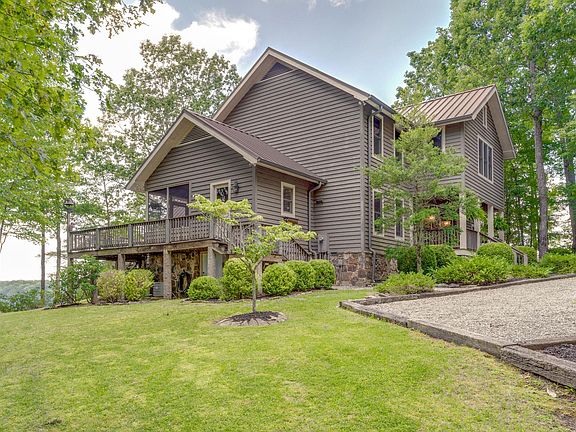 Custom built home with breathtaking bluff views. Quality construction w/welcoming front porch & large entry foyer, open floor plan, custom wood paneling & cabinetry, custom mountain laurel stair rail, den w/dramatic vaulted ceiling and stone fireplace, master suite w/master bath on the main level, each BR has a private bath, charming screened porch, covered deck w/FP, wrap around deck w/views from all sides, separate garage/workshop.