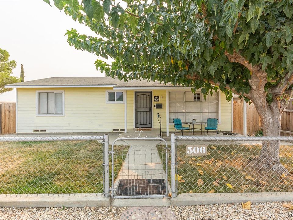 PERFECT starter home or for a family looking to downsize. Cutest yellow house on the block with full fencing for privacy, and a nice porch for your morning coffee! This three bedroom home has been loved and well maintained with newer paint, new grey flooring throughout, completely remodeled bathroom with a new vanity and tiled shower. We love the plantation shutters in the living room and dining room! The kitchen is open and spacious with pretty natural colors! Indoor laundry is a plus too! This home features a very large backyard with a slab and posts already set up for a HUGE back patio. The owners have already ran all of the sprinkler lines, new main line, and tilled all of the dirt in the backyard area, its completely ready for grass seed!