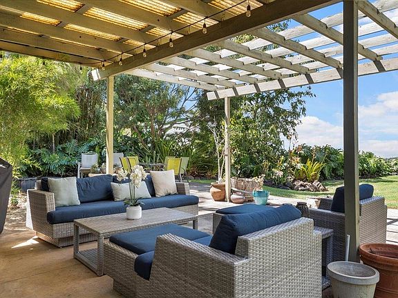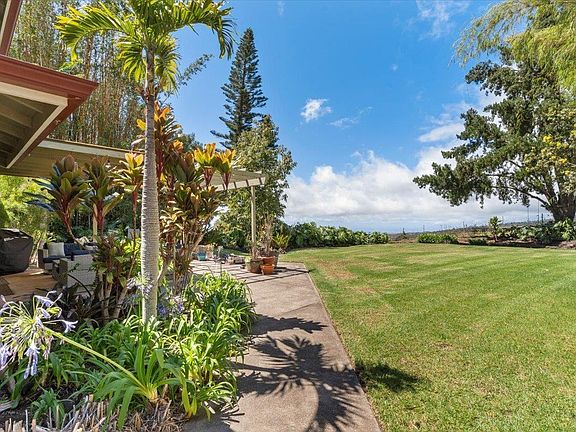 Idyllic Kula setting along a country road and backing up to pasture land, this 5 bedroom, 3.5 bathroom home is thoughtfully situated on the property with a large back yard to entertain and enjoy the ocean and mountain views. The well-manicured vegetation, jacaranda trees, palms, and bamboo bring you close to nature. Inside there's a lovely kitchen with bright white cabinets, where natural lighting complements the handsome wood flooring. The floor plan features 4 bedrooms on the main level, along with a bonus area that functions as an additional living room or play area. Two of the rooms can be accessed by a patio slider that can serve as an additional entrance. The upstairs primary bedroom provides a place to get away, admire the ocean and Haleakala views, and soak in the bathtub. The utility shed and two car garage are great for storage and projects. Adventure awaits, with a rock climbing wall in the front yard, and hiking and biking trails on Haleakala are nearby.