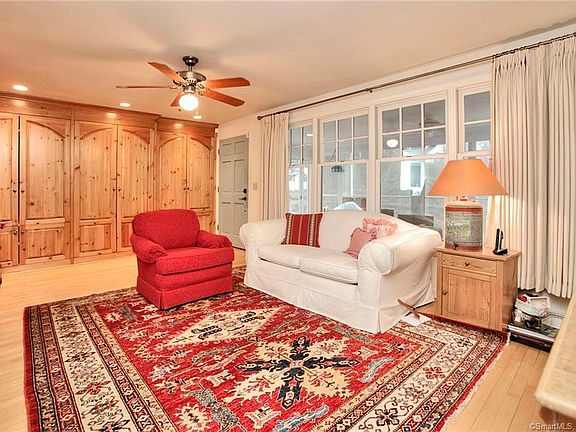 Cul-De-Sac Cutie. Two bedroom (could be three), quality ranch on a quiet, tree-lined area, across from the Samp Mortar reservoir and near Lake Mohegan. Enjoy the view from your three-season front porch. The kitchen is cheerful and awash with soft light and stainless steel appliances. Exquisite, floor-to-ceiling, cherry paneled den with a stone fireplace to cozy up to when the weather outside is frightful. The living room features a bank of arch-paneled, pine cabinetry. Main bath has a frameless shower with whirl pool tub. The lower level has a semi-finished room that could serve as a rec-room--and includes a full bath. There's a lovely fieldstone patio that's great for outdoor entertaining or private outdoor relaxation.