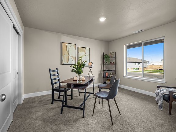 The Charity features a dynamic single story layout with 3 bedrooms and 2 bathrooms, all encompassed in 1,892 SQFT of living space. Highlights include a deluxe chef's kitchen with quartz counters, island, and five burner stainless air-fry convection gas range and luxurious primary suite with freestanding soaking tub, shower, and large walk-in closet. Additional features consist of comfortable great room with gas fireplace, open concept living, 95% high efficiency gas forced air heating, air conditioning, and covered patio. Built by award-winning builder MonteVista Homes.