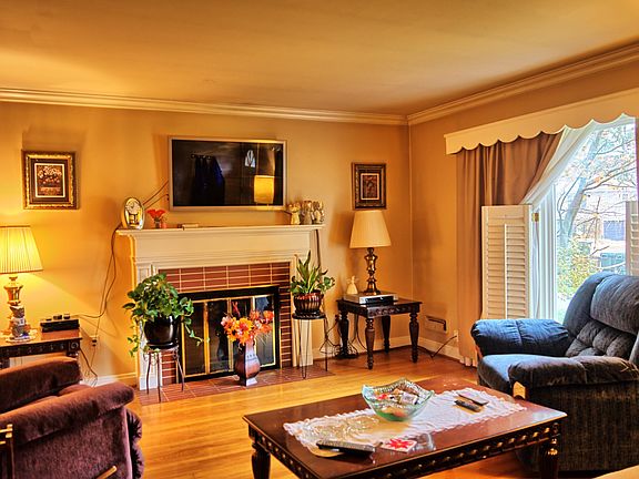 Fantastic Location!! Large family home offers Four bedrooms, 1 1/2 baths, formal living room with gas fireplace, dining room, eat-in kitchen, cozy family room with creek stone fireplace. Hardwood flooring. The master bedroom features double closets and bay window or can be used for rec room etc. There is a finished basement with laundry room and extra storage. Updates include replacement windows on 1st and 2nd floors, Roof approx. 2016 . Dead end street , Private fenced yard with covered patio, large deck and 2 1/2 car garage.