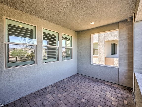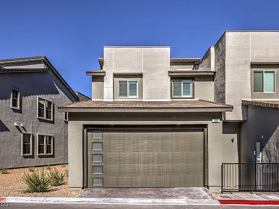 Nearly new! Gorgeous, end unit townhome offers 3 beds, 2.5 baths, & 2-car attached garage in Summerlin. Enjoy impressive Las Vegas Strip views from this exceptional property. Step inside to find beautiful tile flooring throughout the entire 1st floor. The kitchen boasts 42" cabinets, calcutta waterfall quartz island & stainless steel appliances. Plantation shutters throughout! Owner's suite features a large walk-in closet & a private balcony with strip views. Owner's bath features a large , luxurious shower. Additionally, there is a large covered and gated entrance patio for outdoor dining or relaxation. Epoxy flooring in garage & electric car charger. Tankless water heater and soft water system! Excellent schools! 5 minutes away from Downtown Summerlin with its dining, entertainment, & shopping options. Red Rock Casino, Trader Joe's & Costco are also nearby, along with biking & hiking trails & several large parks with community pools. Perfect for Red Rock Canyon Enthusiast!