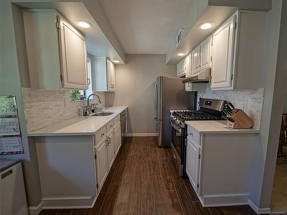 Woodburning fireplaceRecessed lightingPickle ballCrown moldingUpdated eat in kitchenCeiling fans
