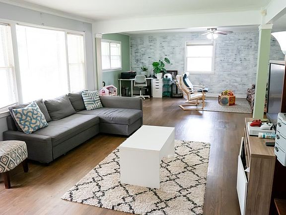 Stylish updated ranch house with brick accent wall, large living area with a kitchen and breakfast bar. Large living area, and kitchen. breezeway carport with workshop attached storage. Free-standing workshop or garage with plenty of storage. updated interior