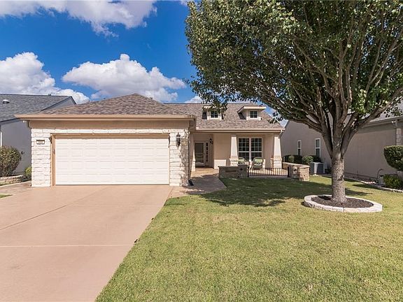 Imagine yourself relaxing on the two gorgeous front and back patios at this meticulously cared for Sun City home. Huge living area with a second living/dining area looking out onto the custom-built covered stone patio! Patio has plenty of space for entertaining, outdoor furniture, a BBQ and more! Plus you don't want to miss this amazing garage! Epoxy flooring with a deep sink, AC, plenty of storage cabinets and two workbenches. Look out onto the greenbelt in the backyard from the master bedroom and living room. Master bath has double vanity, garden tub, separate shower with spacious walk in closet and a built in medicine cabinet. Laundry room with overhead storage cabinets. Don't miss the stainless steel appliances in the kitchen and the ample counter space! Current office is third bedroom.