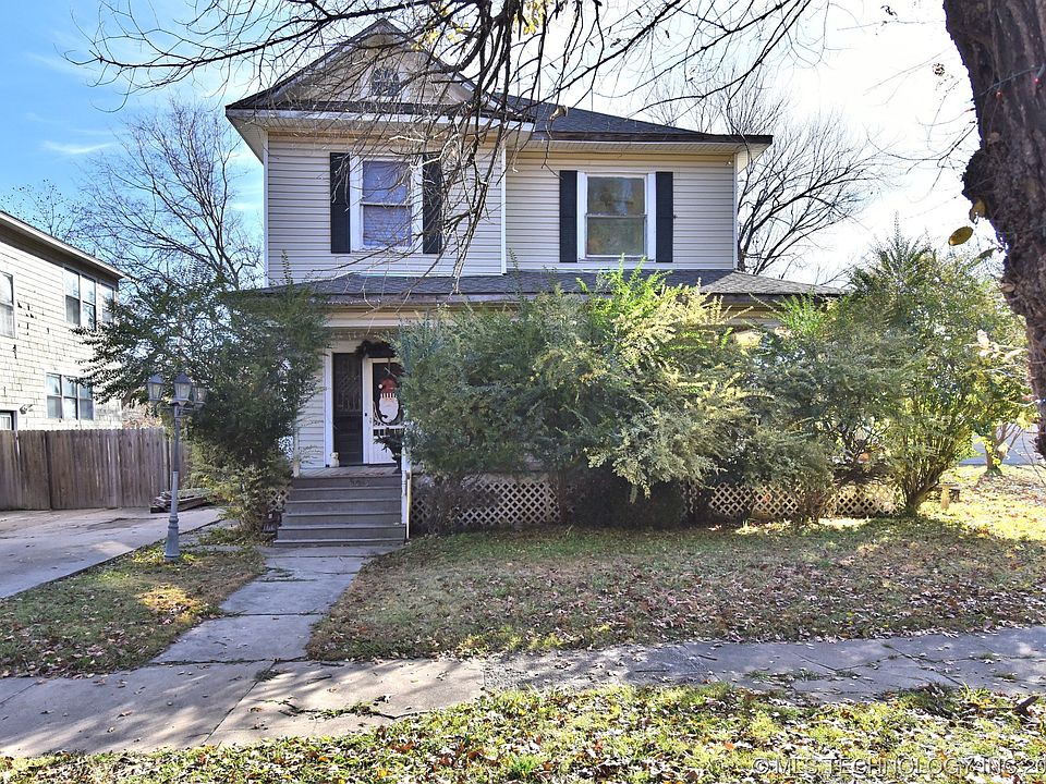 1915 Victorian home located on the Founders Place area of Muskogee. All bedrooms and full baths upstairs for family privacy. Downstairs for friends and entertaining with 1/2 bath. Full basement ready to be finish out for additional space or use for storage. Selling AS IS. Sold with MLS 2339843