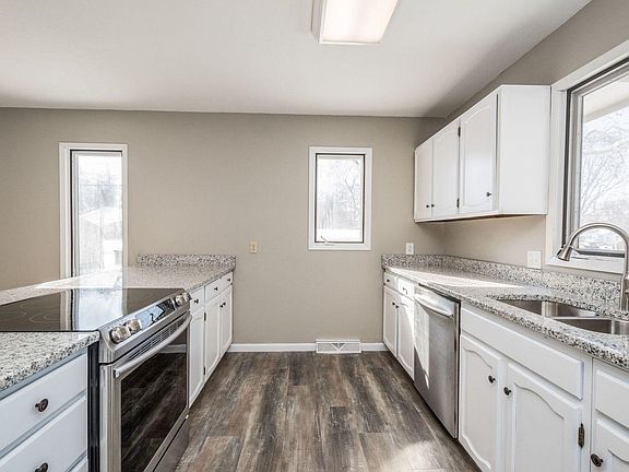 Come see all the updates to this home The open kitchen & dining area features new LVP flooring, granite counters with newly painted cabinets and brand new stainless steel appliances that are negotiable. The 3 bedrooms have brand new carpet and the master has its own ¾ bath with granite countertop. There is fresh paint throughout the home and added LED lighting fixtures. The laundry hookup is in the basement which is ready for your finishing touches to make a great Family Room. The home sits on a shaded flat corner lot and includes a large storage shed to house all the lawn care items which leaves plenty of space in the oversized 2 car detached garage for your vehicles and toys.