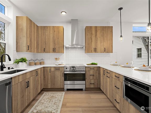 FINAL HOME AVAILABLE! Experience the pinnacle of luxury living w/this exquisite new construction by premier builder MRN Homes, located in vibrant Fremont, just mins from Green Lake & downtown. DEDICATED EV-READY PARKING INCLUDED! Thoughtfully designed w/a modern, sophisticated aesthetic, this residence features an airy, light-filled open layout & a gourmet kitchen boasting sleek cabinetry & premium Fisher & Paykel appliances. The top-floor primary suite offers a spa-like retreat w/a walk-in closet, complemented by a second bedroom. Two additional spacious bedrooms on the lower level w/direct access to the back patio. ELEVATE your lifestyle w/a spectacular rooftop deck boasting panoramic views of Seattle's skyline, Mt. Rainier & Bellevue.