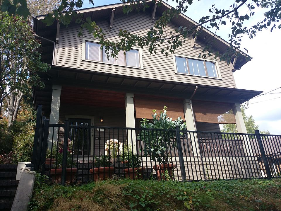 On a tree-lined street, romantic Craftsman, completely remodeled and restored, takes in the beauty of Green Lake and the majestic Cascades to the east. Tasteful updates, period details, beautiful millwork, box-beam ceiling, high ceilings, vintage fireplace, updated kitchen. European tilt-turn windows. Detached 2-car garage, off-street parking. Huge deck, an urban oasis in the heart of Phinney Ridge. Ideally located near zoo, parks, cozy cafes, fun gathering places.