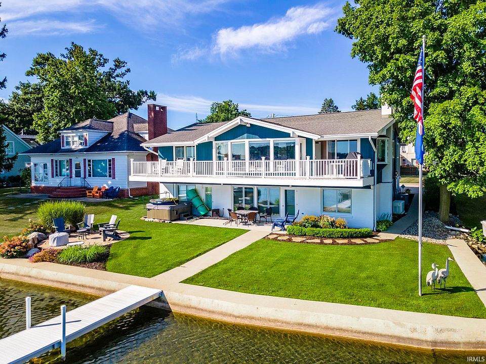 A stunning lakeside retreat offering both luxury and comfort. This exquisite property features a main house with five bedrooms and a guest house, all situated on the shores of Syracuse Lake. With 59 feet of lake frontage, you’ll enjoy breathtaking views. The main house seamlessly blends modern amenities with classic charm. The main floor has a state-of-the-art kitchen, complete with top-of-the-line appliances that will delight any home chef. The adjacent great room and dining area offer panoramic lake views, creating a perfect setting for entertaining or simply relaxing. Step out onto the expansive deck that spans the back of the house, where you can savor the tranquil beauty of the lake. The main floor also includes a convenient laundry/mud room with a half bath and three spacious bedrooms. The master suite features a luxurious master bath with a tile shower and custom plantation blinds framing stunning lake views. Two additional bedrooms are serviced by a full bath, providing ample space for family and guests. The walk-out basement is designed for ultimate comfort and entertainment, featuring a large family room with a cozy fireplace. This level also includes two additional bedrooms—one perfect for guests, and the other, a large room with a walk-in closet that can serve as an office, bonus space, or a fantastic bunk room. A full bath is accessible from the outside, ideal for days spent by the lake. Outdoor living is equally impressive, with a large deck offering a perfect spot to relax and enjoy the lake views. Gather around the brick fire pit by the lakeside for unforgettable evenings with family and friends. The back house provides additional living space with a 2-car garage below and spacious guest quarters above. This area includes two bedrooms and two baths, a kitchen with granite countertops and stainless-steel appliances, and a living area with high vaulted ceilings and a balcony with views of the lake. A dedicated laundry room off the garage adds convenience. Located close to the charming town of Syracuse and with easy access to the Syracuse-Wawasee walking trails, 506 N Front Street offers the perfect blend of luxury, comfort, and stunning natural beauty. Whether you're seeking a year-round residence or a vacation home, this lakeside retreat is designed to cater to your every need. Don’t miss the opportunity to own this piece of paradise on Syracuse Lake.