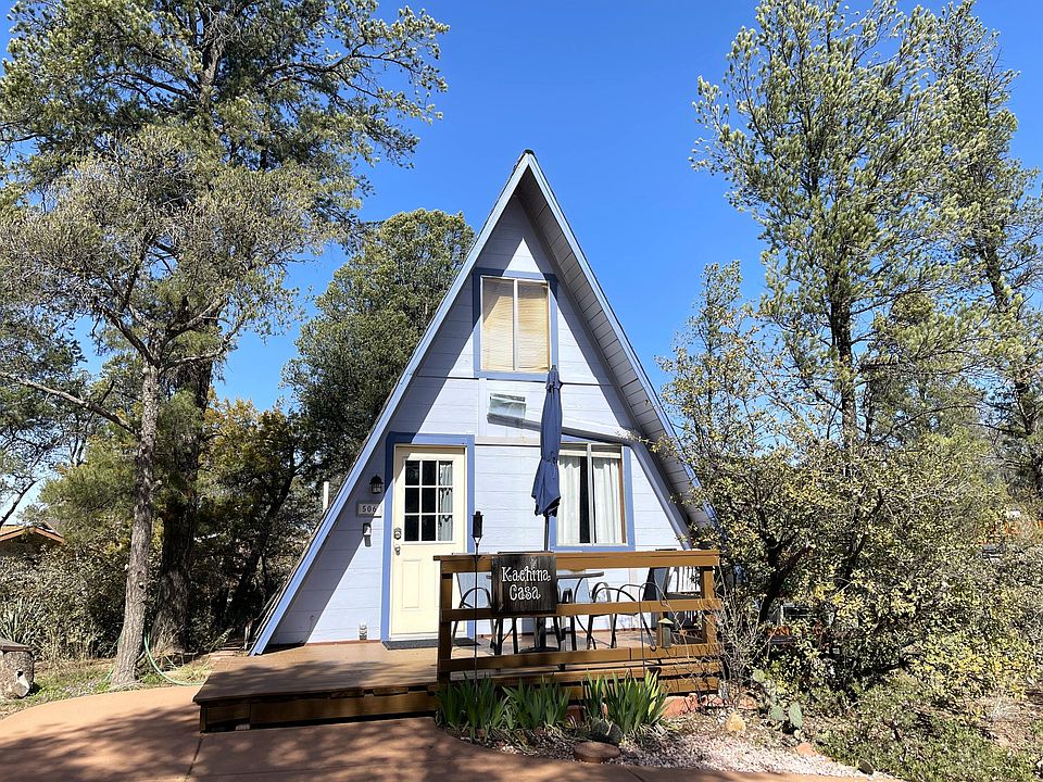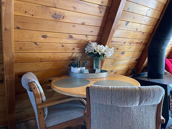 A site-built home in Payson for under $200,000!! This 1 bedroom, 1 bathroom A-frame cabin is located on a great cul-de-sac in Payson North and features 804 sq. ft., and is being sold fully furnished. The living room has laminate wood floors, vaulted ceilings, and a wood-burning stove for additional heat in Payson's cooler months. The kitchen has an electric range and an open floor plan to utilize space. You'll love the front porch with new Trex decking perfect for enjoying the beautiful surroundings. The backyard has mature natural landscaping with plenty of tall trees to provide that wooded feel. Don't miss out on this one! Hospitality Internet has a bay station at the home and has provided it with free internet. This has been a successful Airbnb for a number of years, generating about $3,000 per month during the busy season.