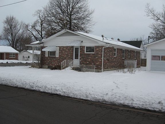 Remarkable 3 bedroom 1.5 bath all brick rancher on nice corner lot. Many updates including paint and flooring. There's a very pretty and fully applianced kitchen with separate dining room. Spacious living room and 3 nice sized bedrooms all on main floor. The basement is partially finished and could easily have another family room,office/bedroom, and does have a half bath and 2nd kitchen. This great home has a 24'x36 2 car dettached garage/shop with a furnace and electric winch. All this and more! $94,900.
