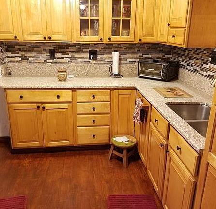 Just reduced by $10,000! This really charming home is located in the heart of Howey in the Hills. Walking distance to beautiful neighborhood park, great lake front with a playground and to the neighborhood corner market. The city library is right around the corner. Updated kitchen with granite counter tops, decorator back splash, new kitchen sink and designer faucet, and original hard wood floors, and wood cabinets. New ceramic tile throughout. Bathrooms have been updated as well. There is an additional room and bath, which was added onto the back of the garage which could make a great office, crafts room,etc. This room has an entrance to the back yard, so it could be a completely private space. Back yard is very large and it would easily accomodate a pool. This would make a great investment property! Come out to see this unique home.