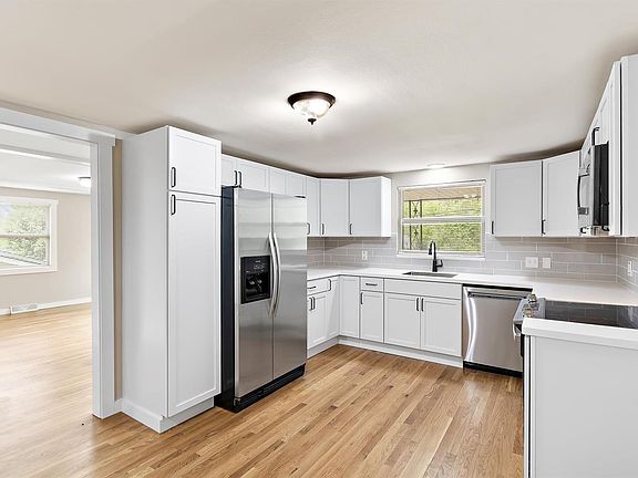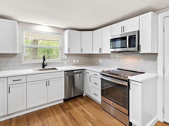 Spectacularly updated 3 bed, spacious walk out ranch home with stunning appeal and street presence! Gorgeous flooring, fresh stylish paint, & countless updates / upgrades throughout. Large living room with wood floors and huge window. Fully renovated dream kitchen with white shaker cabinets, custom tile backsplash, stainless appliances, solid surface countertops! Bathroom with custom tiled shower, stylish vanity, and designer fixtures. Bedrooms are spacious with wood floors.! Other features include HUGE yard, gorgeous landscaping and much more!