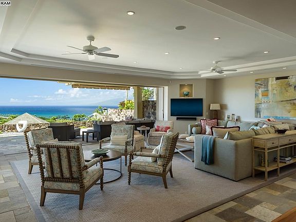 This casually elegant residence was completely remodeled in 2015 by one of Maui's best luxury builders and architects, giving it a like new feel. It offers an inviting and warm ambience with striking ocean, neighbor island and sunset views. Electronic pocket doors open the great room to a beautiful pool with lounging area. The spacious floor plan of over 4,100 square feet includes five bedrooms, four on the ground level and a very private master suite on the second level with an adjacent home office. The quality of craftsmanship is obvious throughout. Designer furnishings, both on the interior and exterior, add to the overall appeal of this lovely Pineapple Hill home. Perfect for quiet enjoyment with family and friends or entertaining. Offered Turnkey. Kapalua Resort amenities include fabulous beaches, world renowned surfing spots, two world class golf courses, The Bay & The Plantation, as well as tennis, hiking trails, luxury hotels and spa, fine dining restaurants and a resort shuttle.