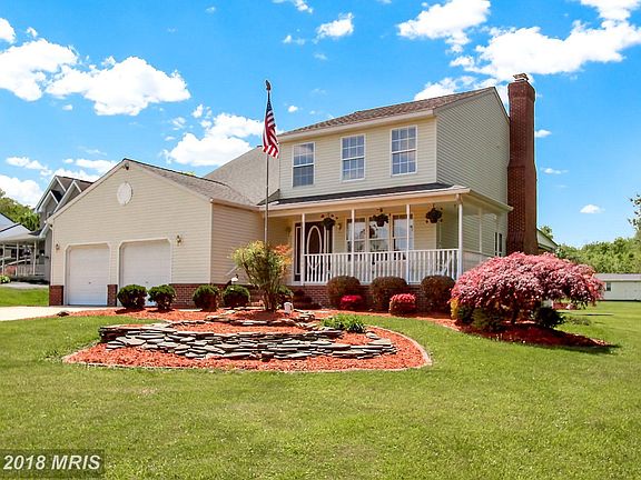 Beautiful Porch Front Colonial on Spacious Lot. Back Covered Maintenance Free Deck with entrance to Kitchen. Step Down into Main Level Family Room w/Brick Raised Hearth Fireplace. Newer Kitchen with White Cabinets, White Appliances, Granite Counters, Island w/Breakfast Bar. Master Bedroom w/Vaulted Ceiling, Walk In Closet & Spa Bath. Finished Basement Rec Room w/Brick Raised Hearth Fireplace.