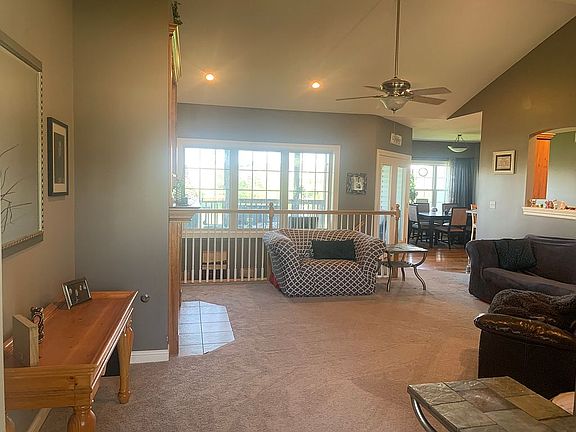 Welcoming custom built 4 bedroom, 3 bath, 3 car garage home. Sits on a double lot with waterfront access and utilities available for back lot. Covered/screened in deck with stunning lake view, pergola with fire pit near the water. Finished basement with John Deere room and an extra storge room. Recently updated with new carpet, master bathroom shower, water heater, water softener, roof, AC unit, and appliances in kitchen. Home features: lake front, custom cabinets, breakfast nook with scenic view, one of a kind lot within an exceptional neighborhood in the Southern Boone school district.