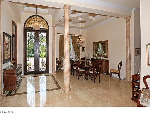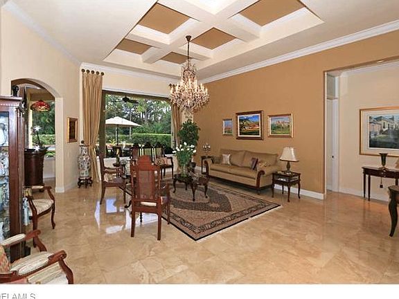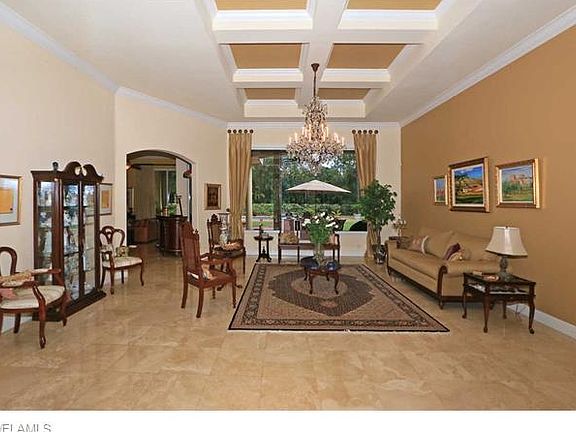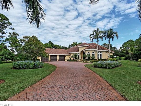 Stunning Estate home. Interior Features include: custom volume ceilings, wood trim, stone and wood flooring, gourmet kitchen with stainless appliances and 10 burner cook top, built in wine closet. Abundant family space for children with a designated homework area, large extra bedroom on rear of home would make a perfect media room 2nd master or children's living area. Exterior features include: 1.77 acre estate, lovely large pool with under roof area perfect for entertaining, lanai has been pre wired and plumbed for an outdoor kitchen, Wind resistant windows, also pre wired and cement pad in place to add a generator, professional landscape and lighting and a spacious three car garage. Situated in the heart of Naples, close to gorgeous beaches, upscale Waterside Shops, The Mercato Shopping Center and Ritz Carlton Beach Resort and the Ritz Carlton Golf Resort. This is a very special family Estate community providing the best in Florida living.
