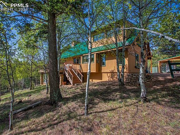 Welcome Home to Your Mountain Oasis Step into this custom-built home, lovingly maintained to offer you a perfect retreat in the heart of the mountains. From the moment you arrive, you’ll feel the warmth and care that has been put into every detail. Imagine cozy winters with an upgraded gas meter ensuring your home is always warm and a heated garage with a 100-amp electrical service for all your needs. Inside, you’ll find a newer programmable pellet stove that adds both charm and convenience, and a beautiful electric fireplace in the basement spare bedroom that invites you to unwind and relax. For those who cherish peaceful moments by the water, this community is a dream come true, with access to five privately stocked lakes where you can fish all year round for just $ annually. Wake up each morning to breathtaking views of Pikes Peak, a reminder of the beauty and serenity that surrounds you. The nearby National Forest (717) is less than a mile away, and hiking trails (511) are within walking distance, offering endless opportunities for adventure and exploration right at your doorstep. With a durable steel roof in excellent condition, you can enjoy worry-free, long-lasting living. The entire exterior was freshly painted in 2019, adding a touch of freshness and pride to this already stunning home. This is more than just a house; it’s a sanctuary where you can create cherished memories, find peace, and embrace the beauty of mountain living. Don’t miss the chance to make this heartfelt mountain retreat your own. Welcome home.