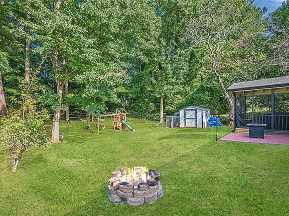 Stone fireplaceFully fenced backyardRenovated kitchenStainless-steel appliancesNew cabinetsGranite countertopsCovered porch