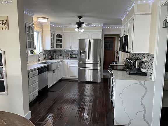 Move in ready-this gem has it all! 5 bedrooms, 2 bathrooms. Fully renovated kitchen offers matching SS appliances, quartz, plenty of storage & abundance of counter space. Livingroom w/woodstove insert, lots of light looking out among the beautifully landscaped front yard. Massive fenced back yard, w/garden, greenhouse, 3 poultry coops, firepit w/year round covered patio. Extra deep 2-car garage offers a ton of built-ins. RV AND toy parking! TV's & W/D are negotiable. There is no place like home!