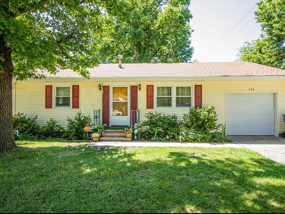 Great curb appeal on this cute 2 bedroom, 1 1/2 bath home located close to the Jr.& Sr. High School. New siding & replacement windows in 2012. Eat-in kitchen with room for formal dining. Nice size full bath with storage behind door. Hall linen closet. Central heat & air. Lots of storage. Room off of kitchen is currently being used as utility room but could be used as a home office, sewing or craft room etc. Great starter home & close to hospital.