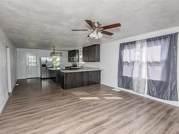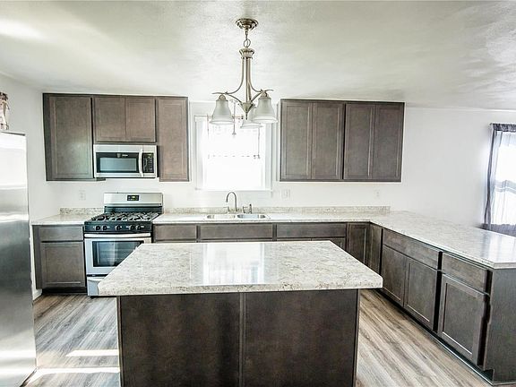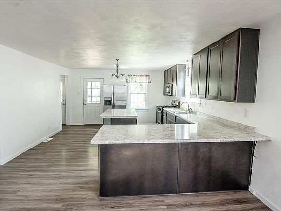Do not miss out on this charming home with a 2-car detached garage. This property has been tastefully updated throughout. You will love the open concept floor plan. The kitchen offers plenty of cabinet and counterspace and is equipped with a center island and stainless-steel appliances. New vinyl plank flooring runs throughout the living room, kitchen, hallway and office area. The covered deck overlooks the fenced in back yard. An exterior shed provides for all your outside storage needs. Home is wheelchair accessible.