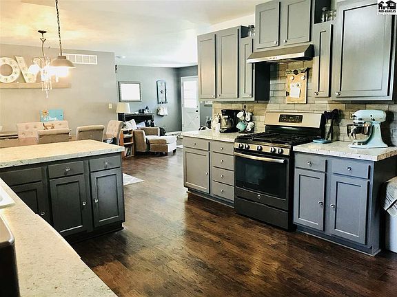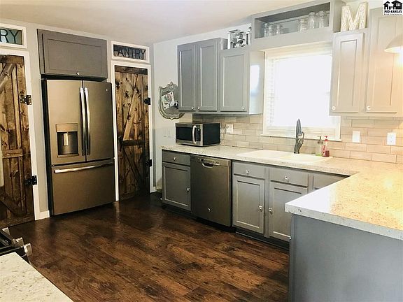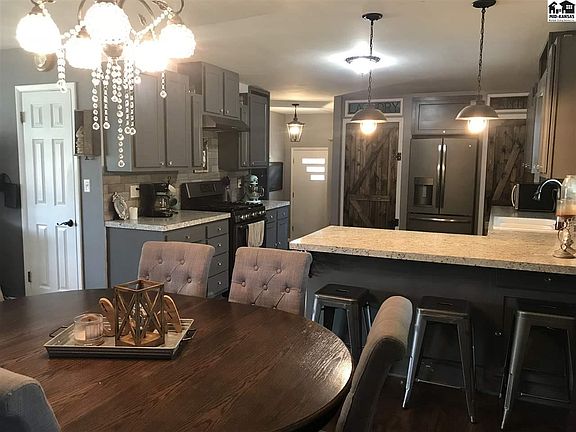 You'll love this sprawling ranch home located in the heart of Moundridge. Surrounded by trees and a huge secluded lot with an open kitchen plan and spectacular design finishes. 4 bedrooms with an extra sleeping room in the basement, 2 bathrooms, a bonus room for hobbies and a basement that is an entertainers dream....