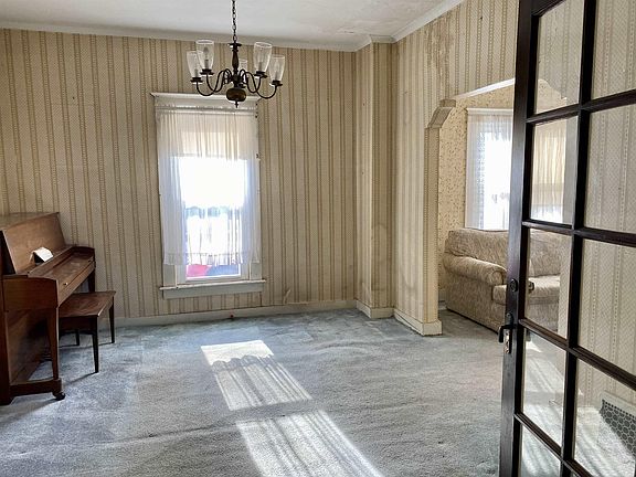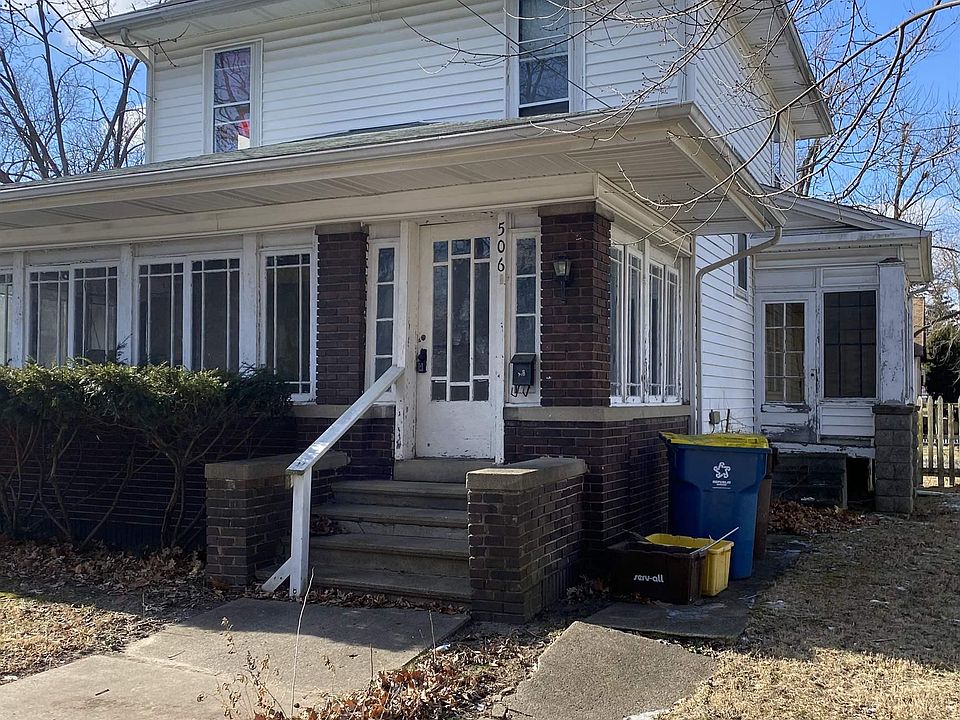 A stones throw away from Trine University Campus this 5 Bedroom 2 Bath home would make a great investment property or starter home. When you enter the home you will find a three season fully enclosed porch with a heavy antique swing perfect for summertime gathering. As you enter to your left there are hard wood french doors that lead to two living room areas open to each other plus a dining room with built-in cabinet. Natural hard wood staircase, doors and original hardware throughout this home. The kitchen is small but built-in cabinets up to the ceiling. From the kitchen you will find another three season fully enclosed breakfast nook porch. There is one main level bedroom and full bath. Upstairs there are four bedrooms and a full bath. The basement is perfect for storage or gaming etc. Big back yard! With this great location this house will sell quickly! Schedule your showing before this gem is gone!
