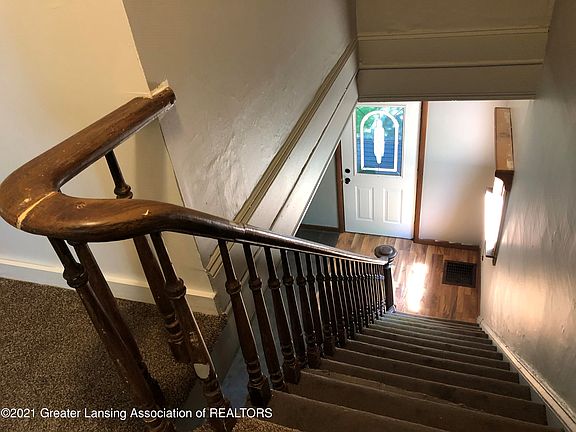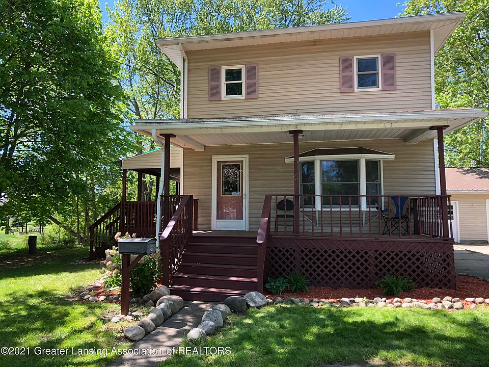 Three bedroom two bathroom home in the city of St. Johns on .7 Acer. Large covered front porch leads you into the living room with an open stairway. This home has a formal dining room with access to the covered deck. The kitchen has an eat in area in the kitchen. A great office and one bedroom are also located on the first floor. The laundry room is between the garage and kitchen which makes for a perfect spot for boots and coats etc. There is also a full basement and the garage has plenty of storage space. The upstairs has a full bathroom along with two additional bedrooms.