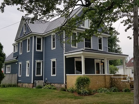Immediate possession available with this spacious yesteryear charmer just south of downtown Bourbon. Covered 9x24 front porch, hardwood floors, original woodwork and trim, open staircase, 9 foot ceilings, pocket door, formal dining room, main level laundry room, finished 3rd level (attic) could be home office or kid's playroom. Other amenities include a fireplace, modern high efficiency GFA furnace, newer breaker box, central AC plus a partial basement (for mechanicals and storage). New metal roof in 2015. Deep lot with wood privacy fence and a 30x40 pole building style garage with concrete floor, separate breaker box, LED lights and ceiling fans heating and AC. City water and city sewer.