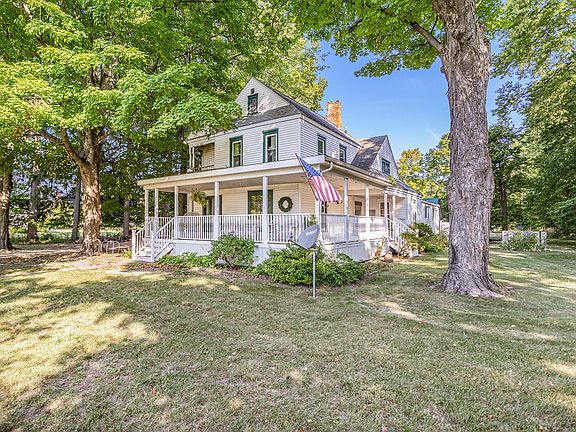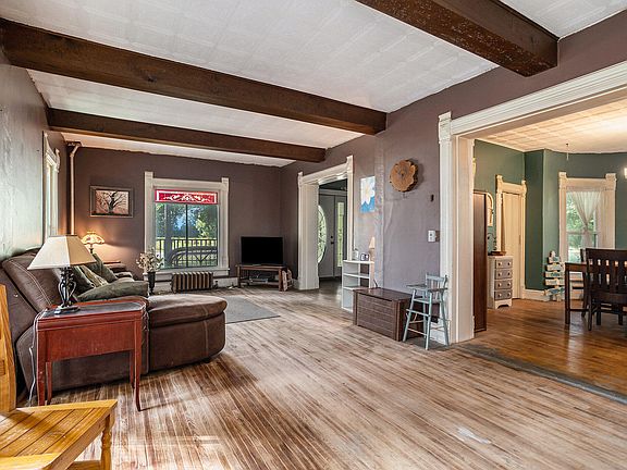 This huge historical 2760 square foot home sits on 4.4 acres of wooded riverfront property on the very edge of the village. Home features include 5 bedrooms and 2 full baths, spacious family/rec room with wood burner, fireplace in living room, hardwood floors, amazing woodwork throughout. In the front you will find a large wraparound front porch, and in back there is a heated and insulated building well suited for a man cave, she shed, office, workshop or many other potential options. Updates include replacement windows and new boiler (1 year old) If you love historic homes with character this might be what you have been looking for!