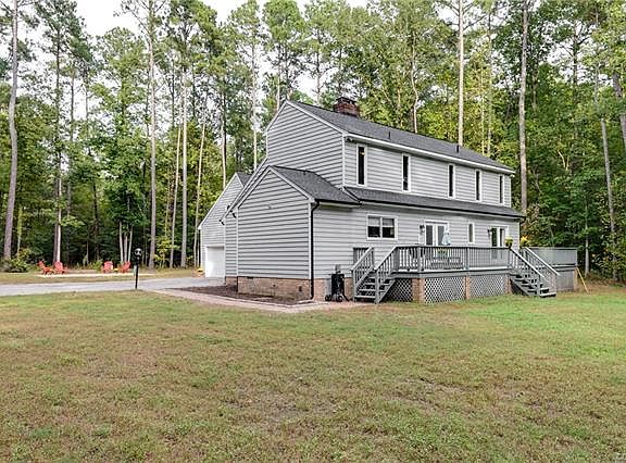 20 Minutes to the Fort Lee Mahone Gate! Welcome to 506 Sandhurst Dr! One of a kind, upgraded home on 5 acres! Living room with floor to ceiling brick fireplace, new skylights, ceiling fan, sunken room with hardwood floors, and a view of the upstairs balcony make this a great space to relax in. Through the double doors you'll find a dining area with chair rail molding, gorgeous tile floor and french doors that lead out to the deck. The kitchen features a brick accent wall with a fireplace and oven. Granite countertops, tiled backsplash, SS appliances, new cooktop, custom window treatments, recessed lighting and tile floor make this kitchen a great entertaining space. First floor master has a walk-in closet with built in shelves and an en-suite with a separate vanity area. Upstairs there are 3 bedrooms all with carpet, two of which share a jack and jill bath that has been completely remodeled and includes a custom vanity, subway tile shower, and a wood grain looking tile floor. Additional room on the 2nd floor can be used as an office or rec room. Enjoy the outdoor's on the stone patio w/ a brick firepit or in the open back yard area. New garage door system.