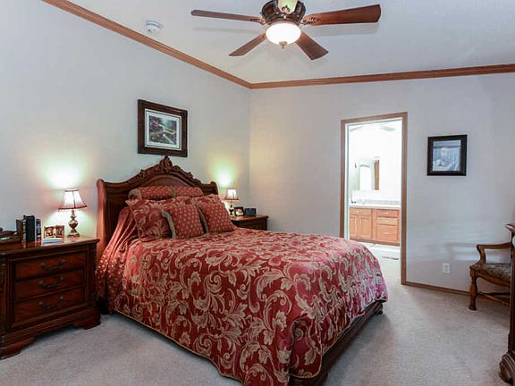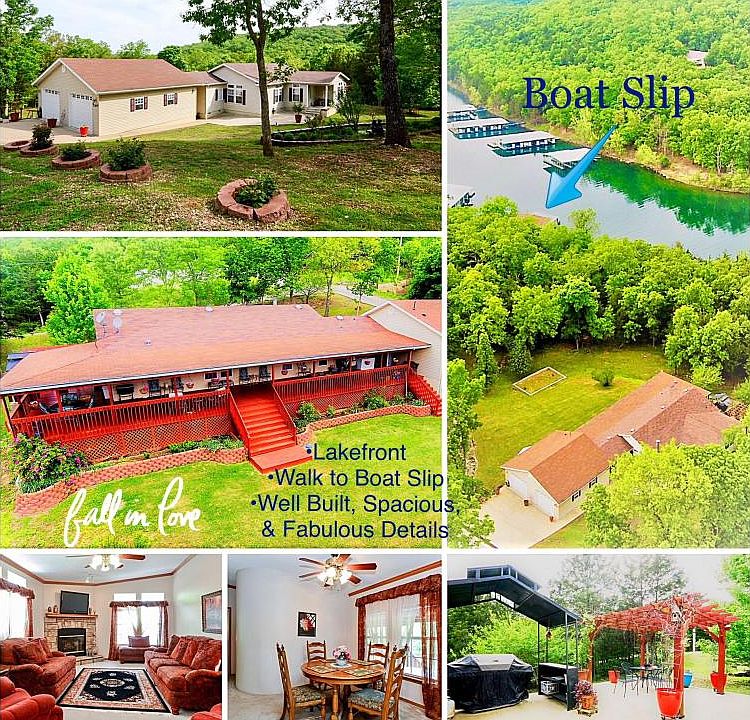 LAKE FRONT,WALK TO BOAT SLIP AT THE EDGE OF PROPERTY!!This is 1800 SF of WOW!!A true modular home,well built, spacious & has fabulous details...like the custom curved walls,crown moulding, a murphy bed, a humongous covered deck, a BBQ canopy & a master en suite to die for. Enter beautiful leaded glass doors with sidelights. Vaulted ceilings in almost every room, the stone(faced)gas fireplace is an eye catcher! Large windows everywhere for plenty of light.The Deck is 12'wide 85'long & wraps around with steps to the BBQ Canopy. Big Back yard with a garden area & a wet weather creek.The huge & tall garage is detached for lower insurance rates,but attached to the house by a covered by a breezeway,& includes a storm shelter & Workshop area.Room outside to park your RV. BS&Lift for sale $25k ext