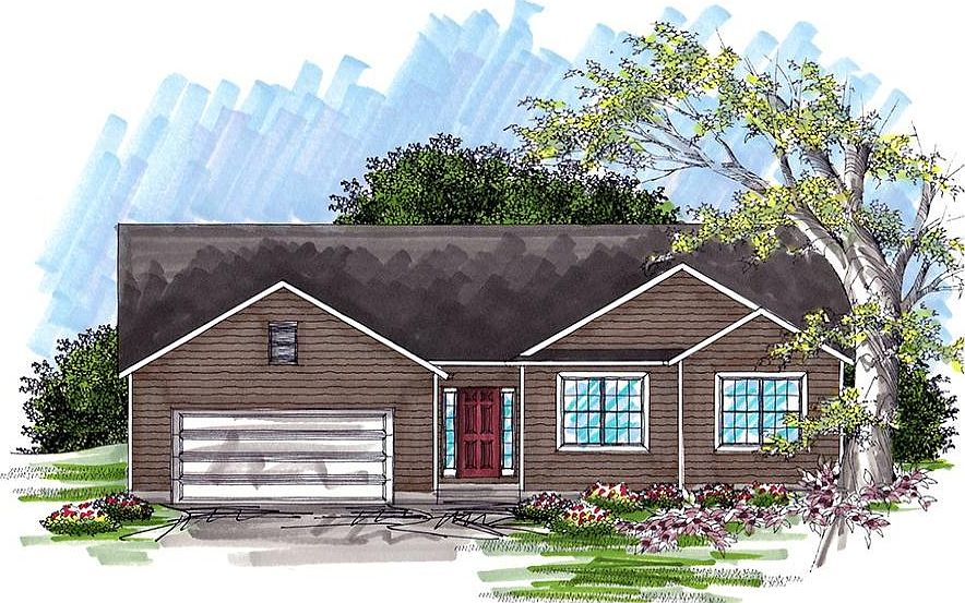Semi-split bedroom ranch plan. Large Eat-in kitchen with pantry. Additional linen closet. Walk-in closet with entry from master bath. Optional drop zone area. Walk-through dining.