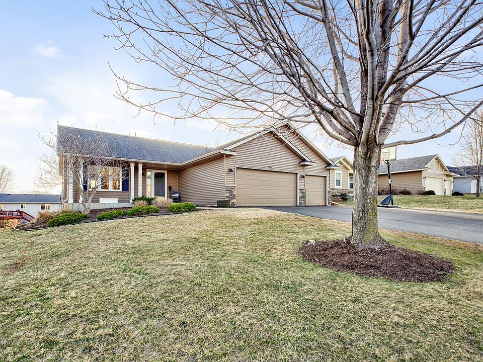 Wonderful 5 bedroom 3 bath walk out rambler home in Dundas. Located just a few miles from downtown Northfield and great location with a park nearby. Enjoy the outdoors on the deck and spacious back yard. An irrigation system makes for simpler care of lawn and landscaping. Open floor plan and an abundance of natural light greets you on the main level of the home. Great kitchen with brand new refrigerator, stove, microwave and dishwasher. Kitchen, dining and living areas nicely connected and open. 3 nice bedrooms including the primary bedroom on the main level. Private bathroom adjoins the primary bedroom. A convenient full bath near the other 2 main level bedrooms. Having laundry on the main level makes that task a bit easier. 3 car garage for ample parking and additional storage space. Lower level is complete with 2 more bedrooms, a full bath and 2 wonderful entertaining family areas. This home provides space and comfort for family and friends.